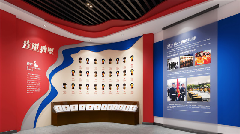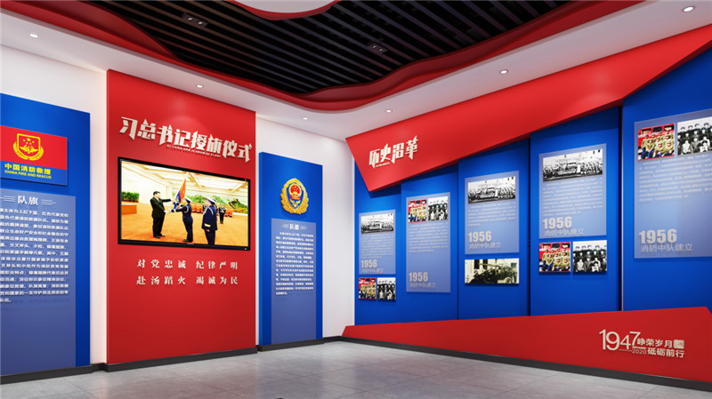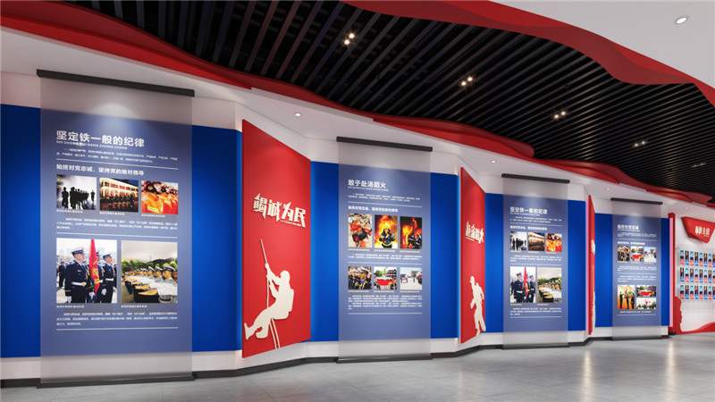 榮譽(yù)室方案設(shè)計(jì)之初,在文化融合上,將消防文化與紅巖精神有機(jī)結(jié)合,充分展示某消防救援支隊(duì)的精神文化;在色彩設(shè)計(jì)上,融合消防旗幟的色彩搭配,展現(xiàn)消防的火焰藍(lán)活力;在技術(shù)應(yīng)用上,采用領(lǐng)先的聲、光、電等智能多媒體技術(shù),有效地將消防文化與展陳內(nèi)容完美結(jié)合。