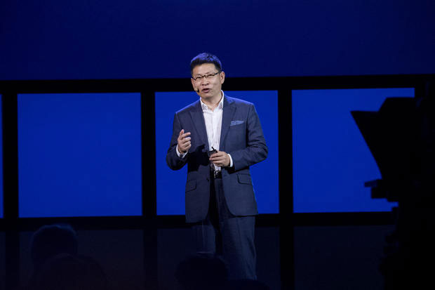 圖為華為消費(fèi)者業(yè)務(wù)CEO余承東進(jìn)行以“終端智能”為主題的演講